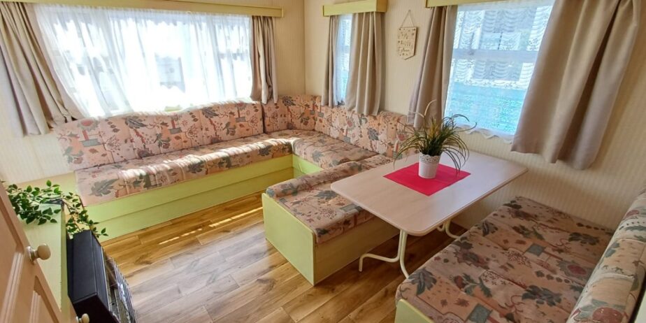 Domek CAŁOROCZNY, Posiada podwójnie przeszklone okna, centralne gazowe ogrzewanie, salon z jadalnią, otwarta kuchnia, zlewozmywak, kuchenka gazowa, mikrofala, lodówka, łazienka z prysznicem i toaletą, woda podgrzewana przez piec dwu-funkcyjny.